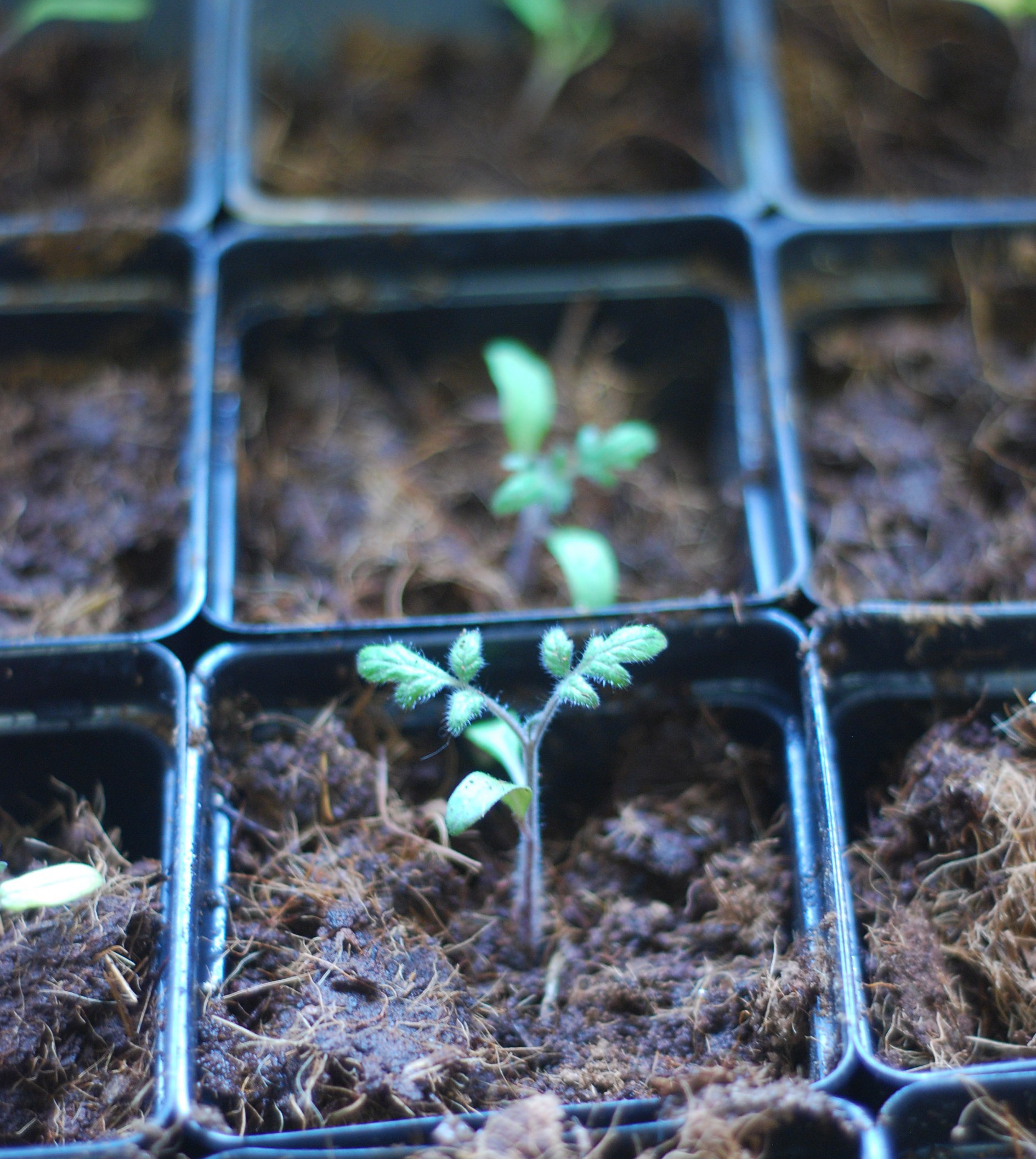 The first wheelbarrow was nearly full, my ankle was reminding me that this was my first real shovel work since its last injury, and then the dog perked up his head and started sauntering down the walk. I looked up and saw he was shyly wagging his way to meet the neighbor two houses down, so I followed. Our dog minds well on good days, minds with mediocrity on some days, and gets a mind of his own on occasion. He’s eighty-five pounds of strong sweetheart but has his triggers after he was attached two years ago, so we never lack for caution. An hour later, he and I both felt as though we had made a new friend and the sun was slipping. It was going to drop into the 20s again soon, so I cleaned up, packed up, and we went went back inside to check on my little tomatoes, now in their 4″ pots of garden soil, seed starter, and coir.