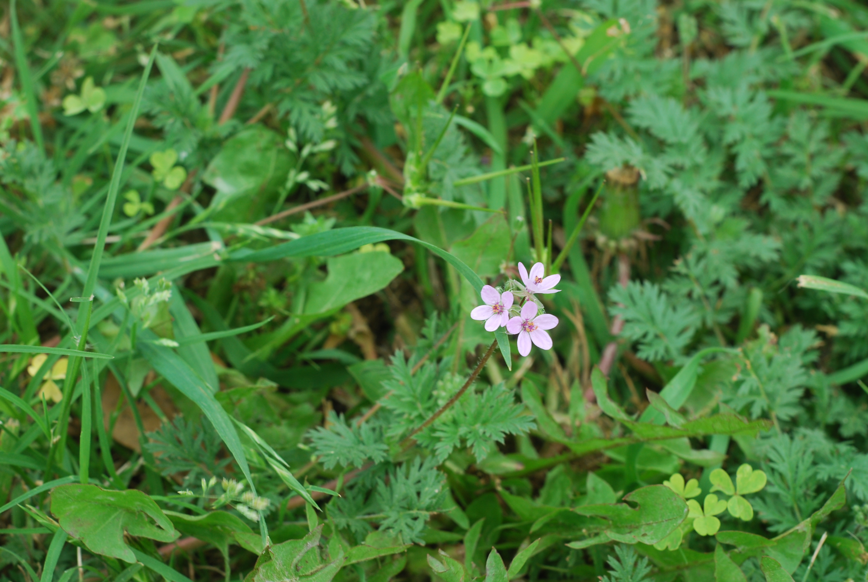 This little purple “weed” (who has wood sorrel neighbors that were dancing in the wind so much as to blur for the lens.)