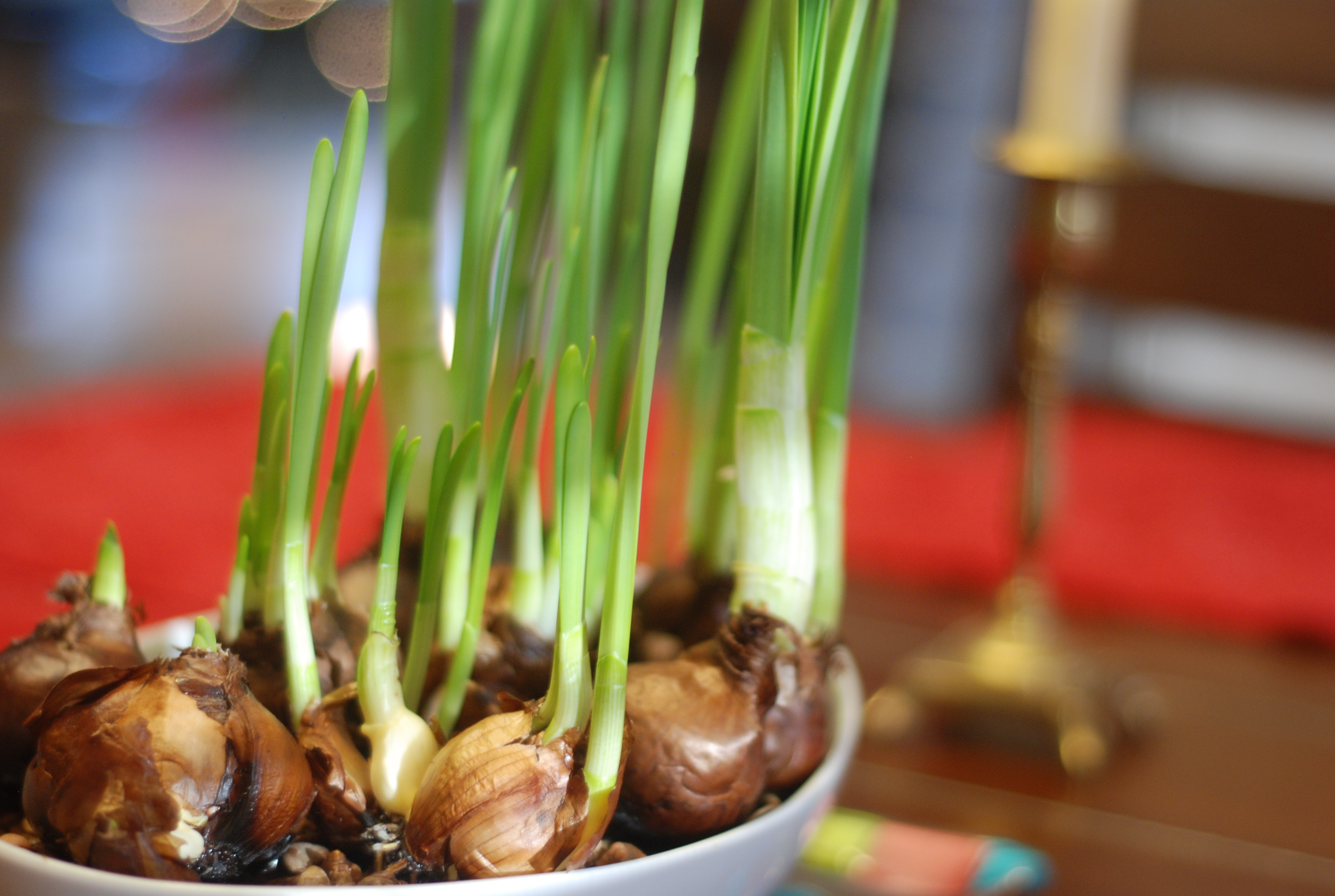 Speaking of plans, my first attempt at paperwhites (thanks to Stacey for the idea!) didn’t quite make it for Christmas blossoms.