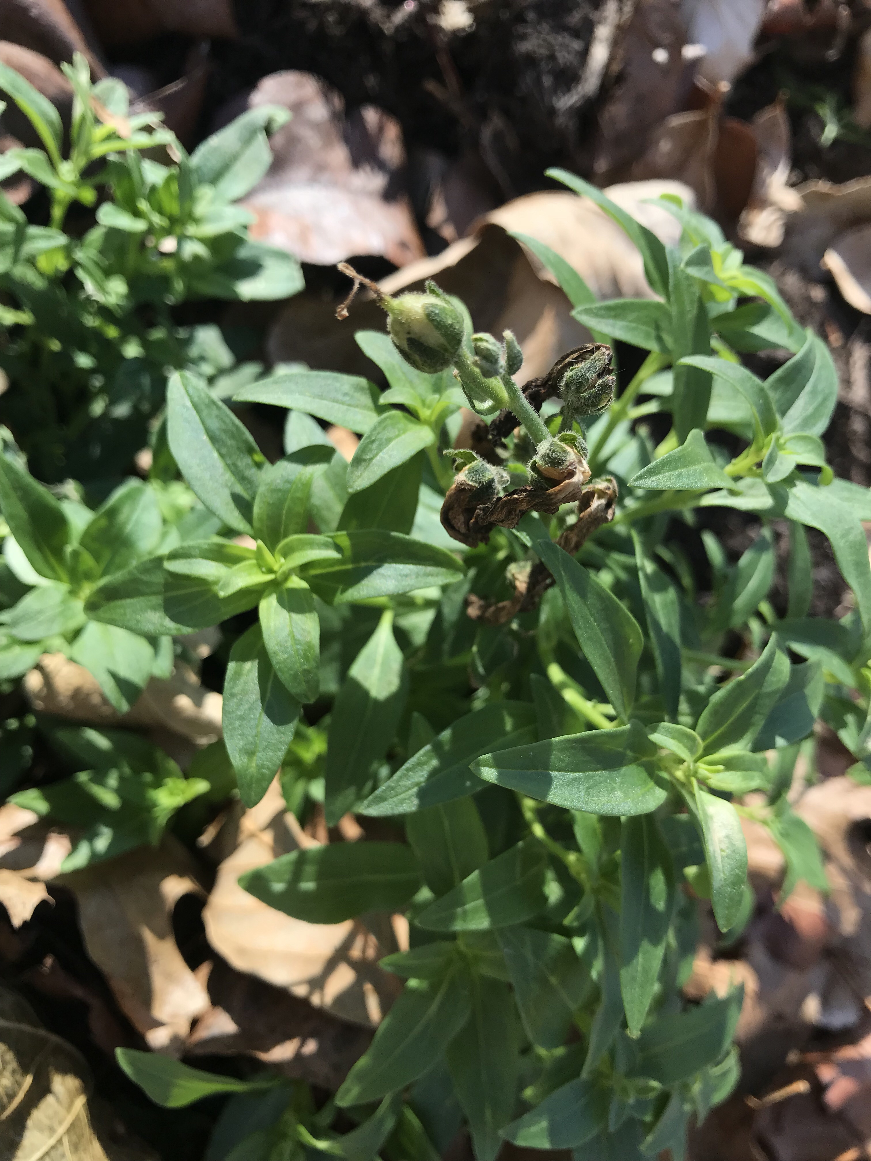 This variety has sprouted in a few spots we sprinkled. Each pair of leaves with a match pair of nibbles. Such consistency that I first thought it a pattern of growth… but it’s instead a habitual snacker.