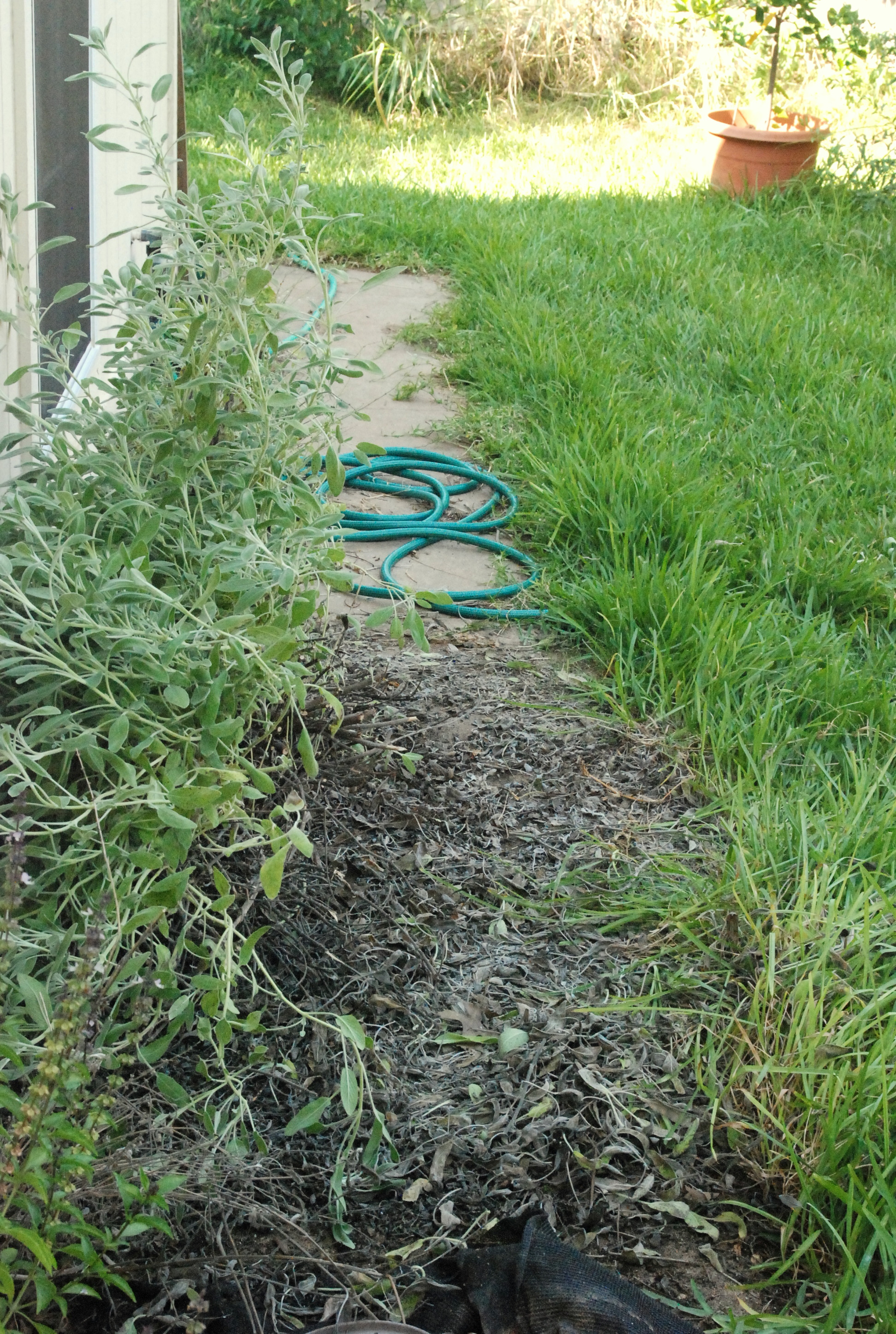 I’m going to leave the Heat Bed for now. Anything I plant now won’t have a strong chance of survival with the days only getting hotter, and drier, until October. Plan C will look more like Plan A. Sure, the 40′ Silver Maple is gone. But the Fragrant Mimosa gained a foot these last six weeks, the Mexican Bush Sage is still blooming it’s purple velvet plumes, and at least one of the little orange daisy bunches is hanging in there.